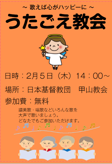 課題曲(今回は讃美歌5曲)と参加者からの リクエスト曲(讃美歌/唱歌/叙情歌/歌謡曲等)ヒムプレーヤーやインターネットを駆使して